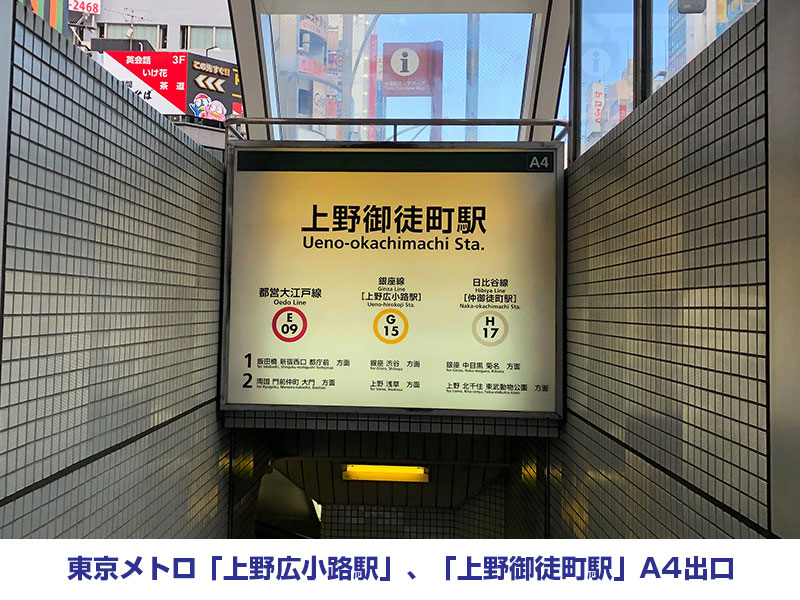 ① 東京メトロ「上野広小路駅」、「上野御徒町駅」A4出口