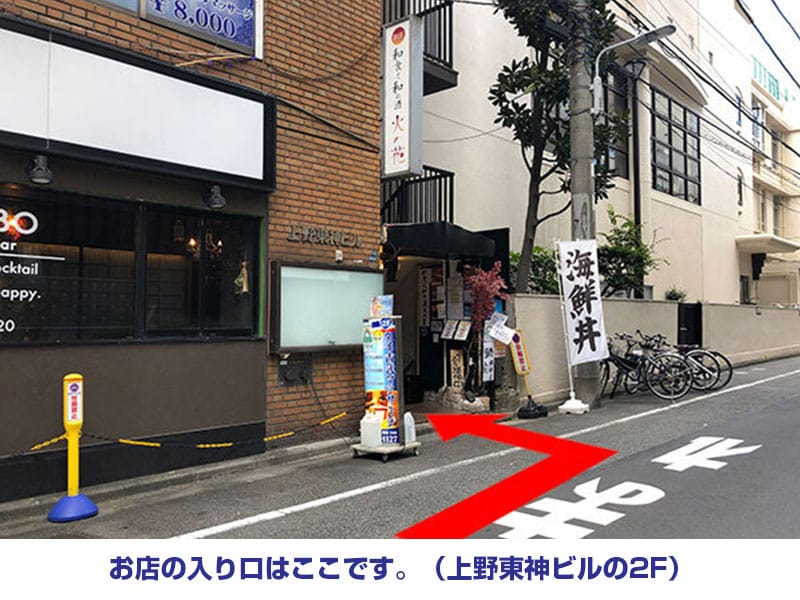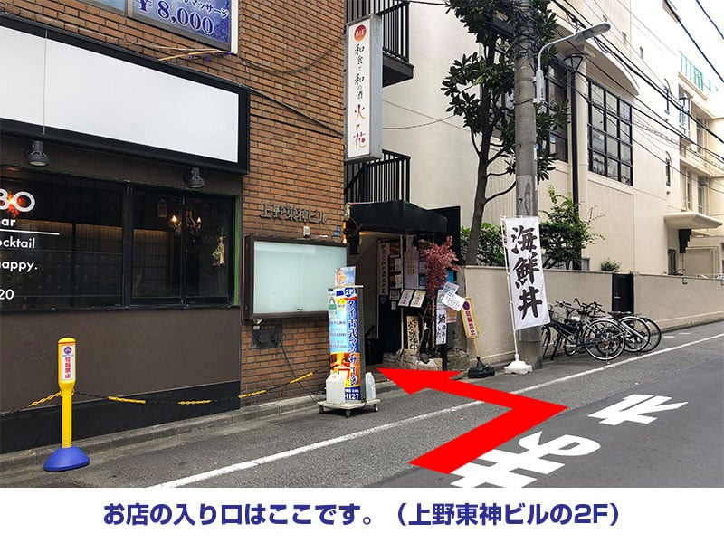 ⑧ お店の入り口はここです。(上野東神ビルの2F)
