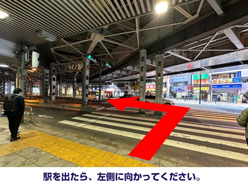 - 駅を出たら、左側に向かってください。