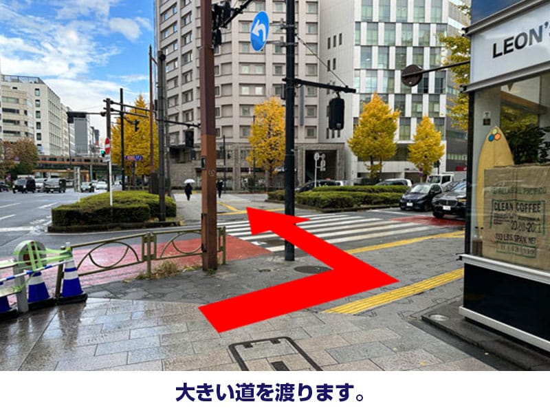 - 大きい道を渡ります。