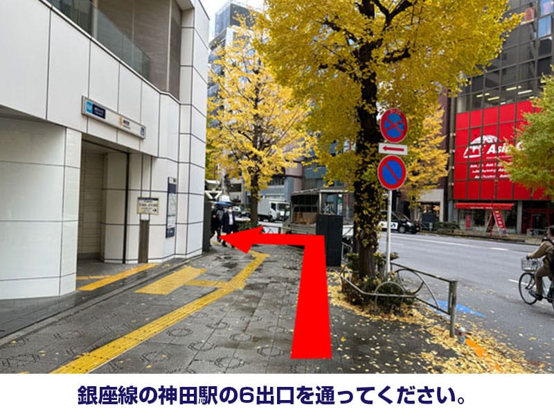 - 銀座線の神田駅の6出口を通ってください。