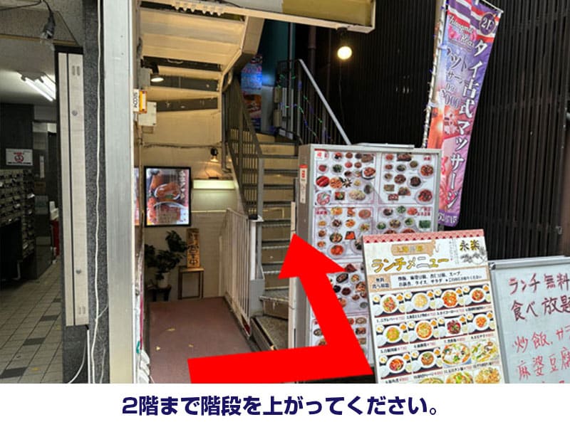 - 2階まで階段を上がってください。
