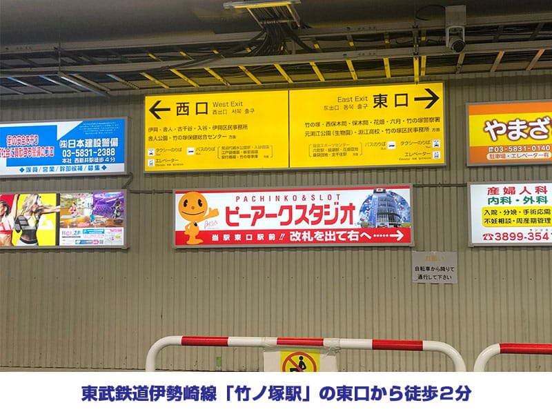 ① 東武鉄道伊勢崎線「竹ノ塚駅」の東口から徒歩2分
