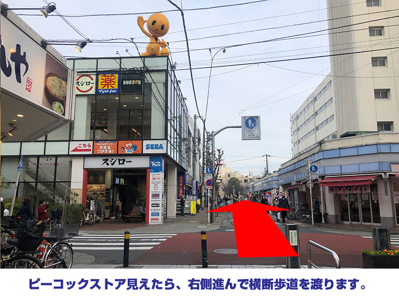 ③ ピーコックストア見えたら、右側進んで横断歩道を渡ります。