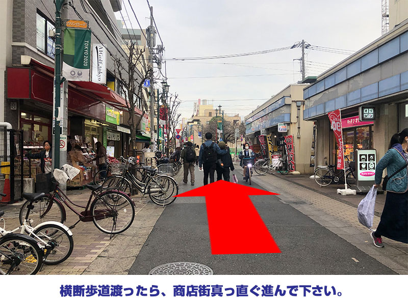 ④ 横断歩道渡ったら、商店街真っ直ぐ進んで下さい。