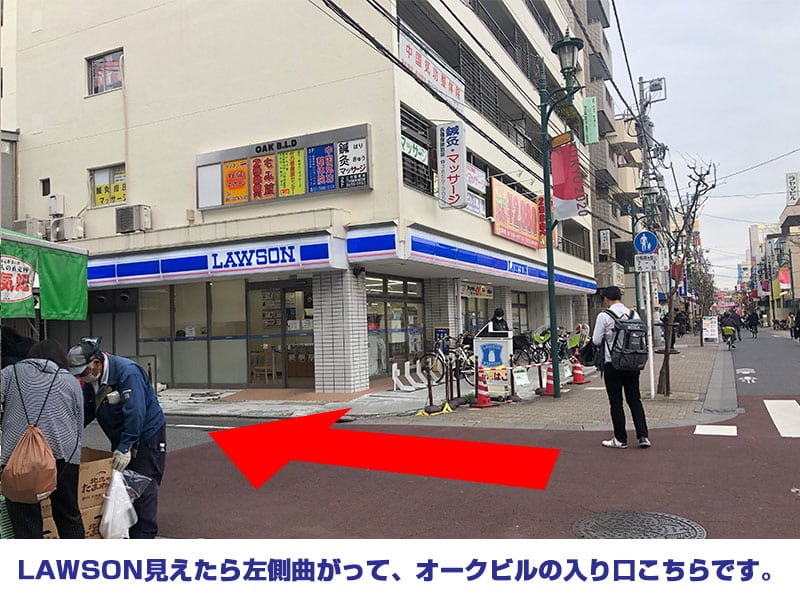 ⑤ LAWSON見えたら左側曲がって、オークビルの入り口こちらです。