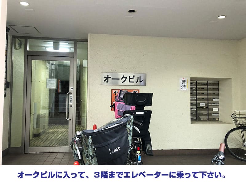 ⑥ オークビルに入って、3階までエレベーターに乗って下さい。