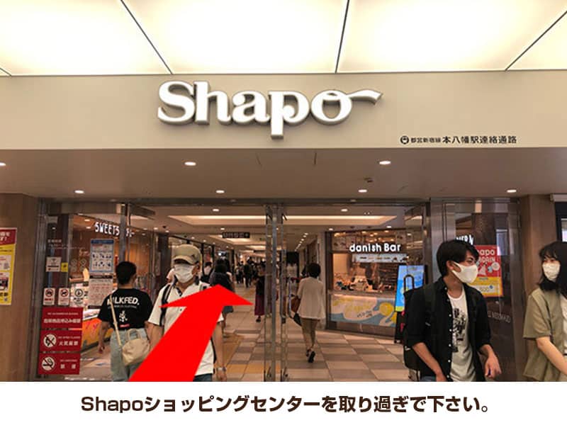 - Shapoショッピングセンターを出て横断歩道を渡って左側へ進みます。