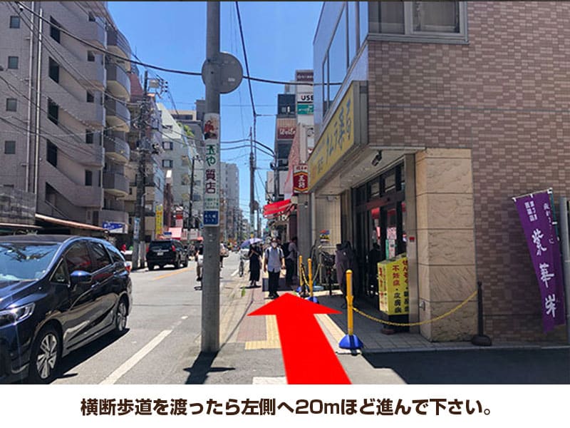 - 横断歩道を渡ったら左側へ20mほど進んで下さい。