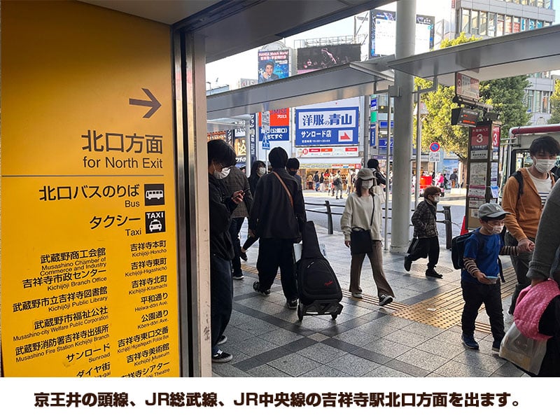 1.京王井の頭線、JR総武線、JR中央線の吉祥寺駅北口方面を出ます。