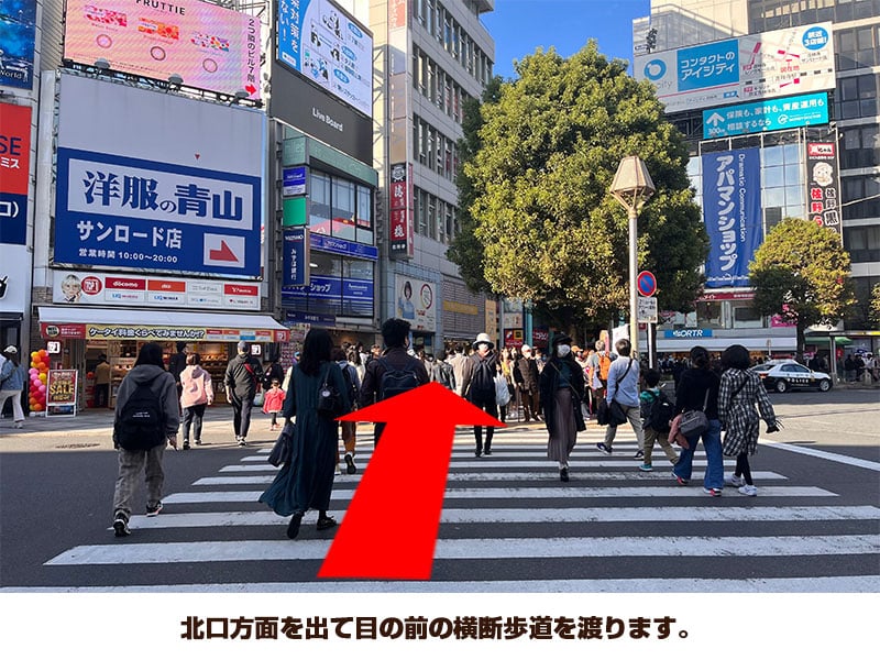 2.北口方面を出て目の前の横断歩道を渡ります。