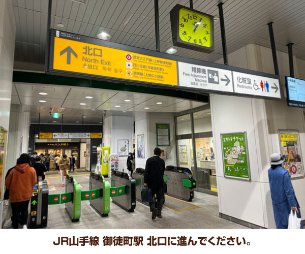 1. JR山手線 御徒町駅 北口に進んでください。