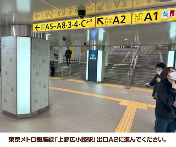 1. 東京メトロ銀座線「上野広小路駅」出口A2に進んでください。