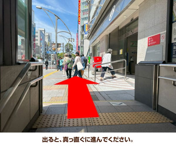 3. 出ると、真っ直ぐに進んでください。