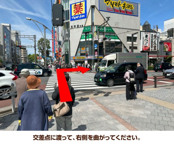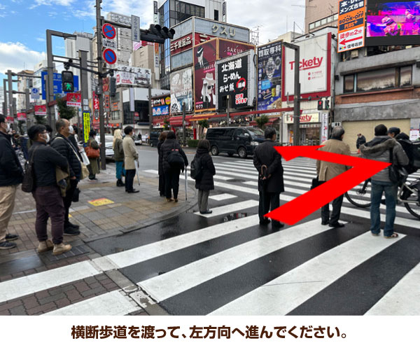 4. 横断歩道を渡って、左方向へ進んでください。