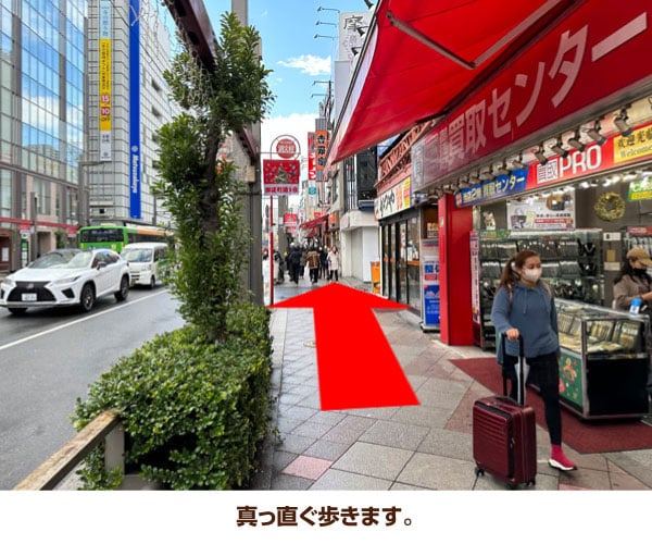 2. 御徒町駅 北口から出ますと左側の中央通り方面に進んでください。
