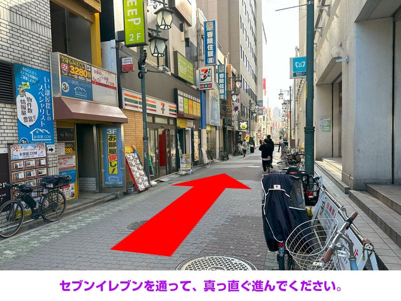 - セブンイレブンを通って、真っ直ぐ進んでください。
