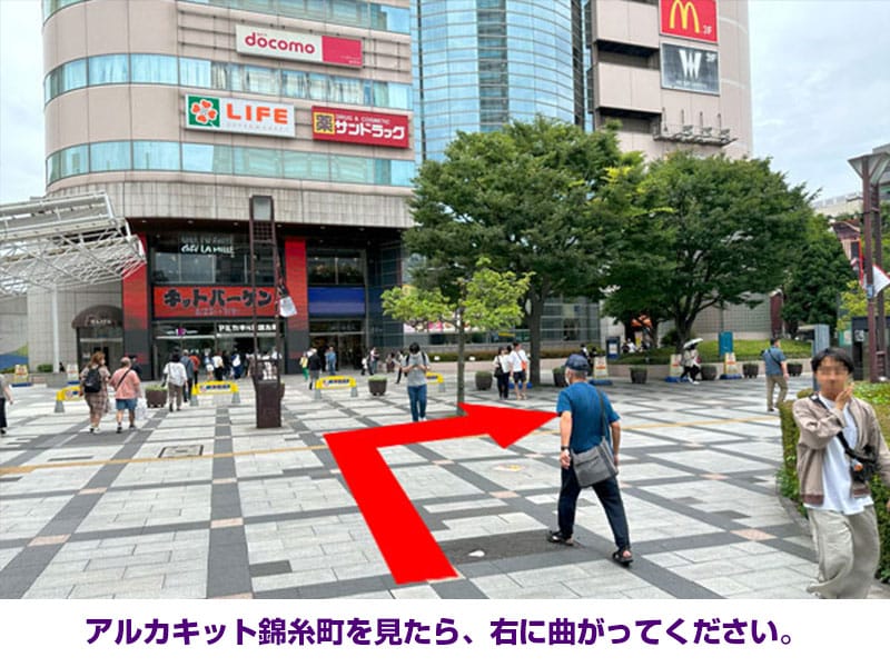 - アルカキット錦糸町を見たら、右に曲がってください。