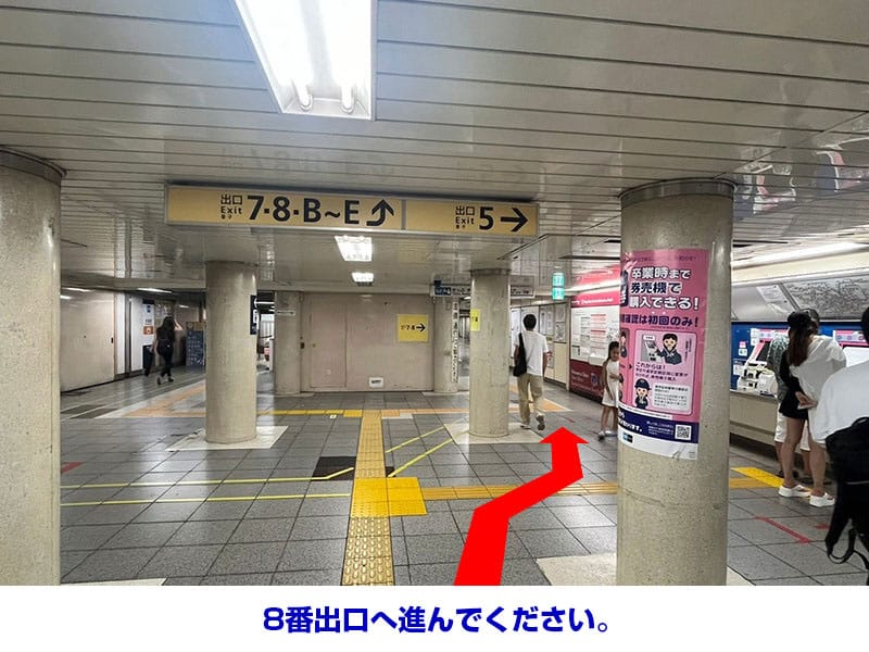 8. 交差点まで歩いて、道を渡って、左へ曲がってください。