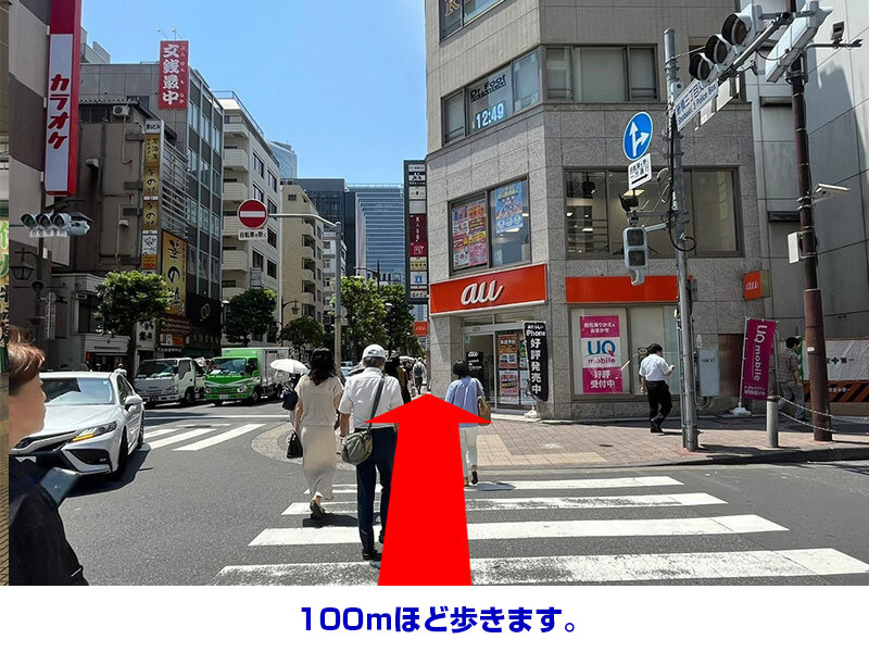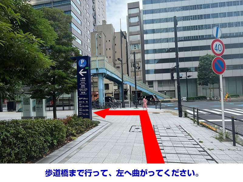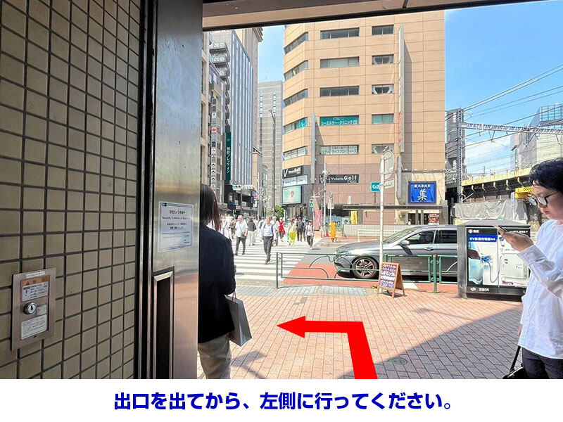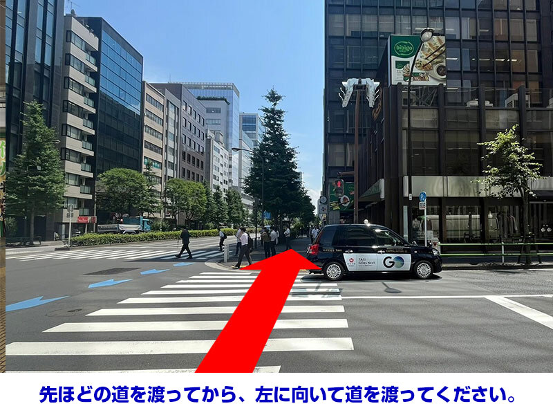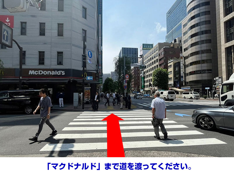 10. 「三甲新橋ビル」まで行って、道を渡ってください。