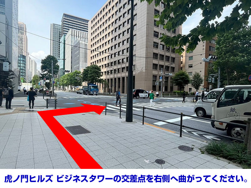 10. 「虎ノ門ヒルズ ビジネスタワー」の交差点を右側へ曲がってください。