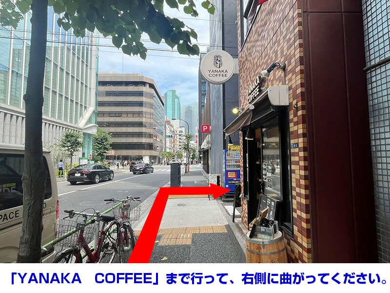 12. 「YANAKA COFFEE」まで行って、右側に曲がってください。