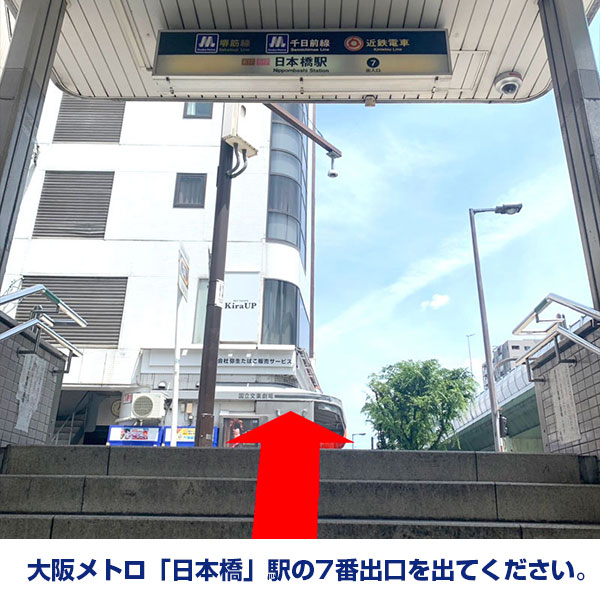 1. 大阪メトロ「日本橋」駅の7番出口を出てください。