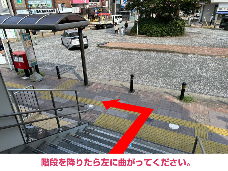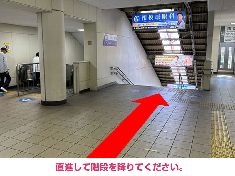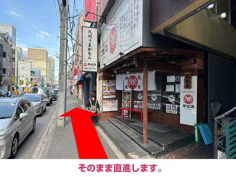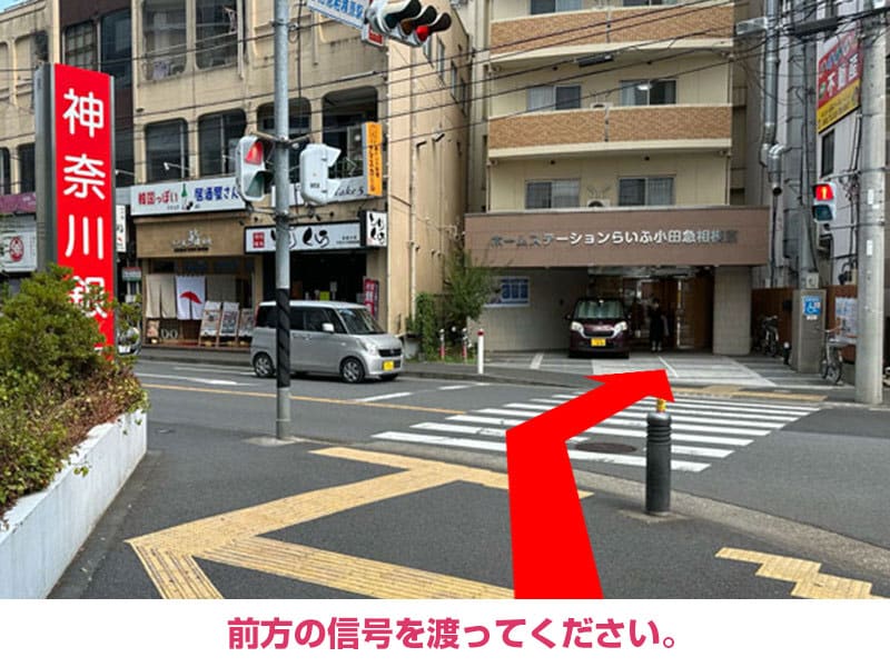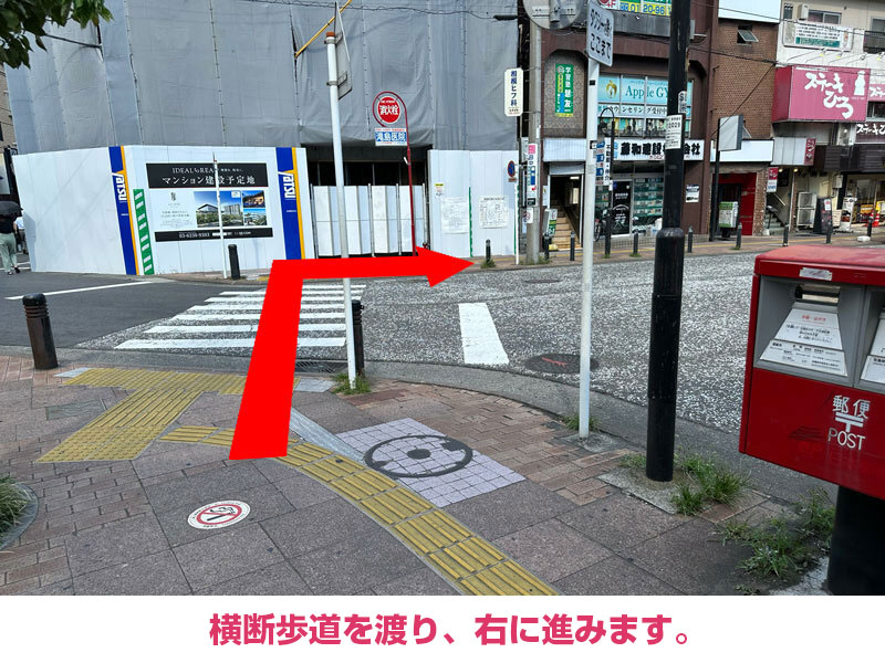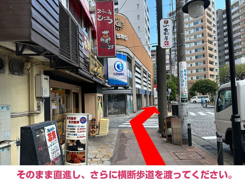 - そのまま直進し、さらに横断歩道を渡ってください。