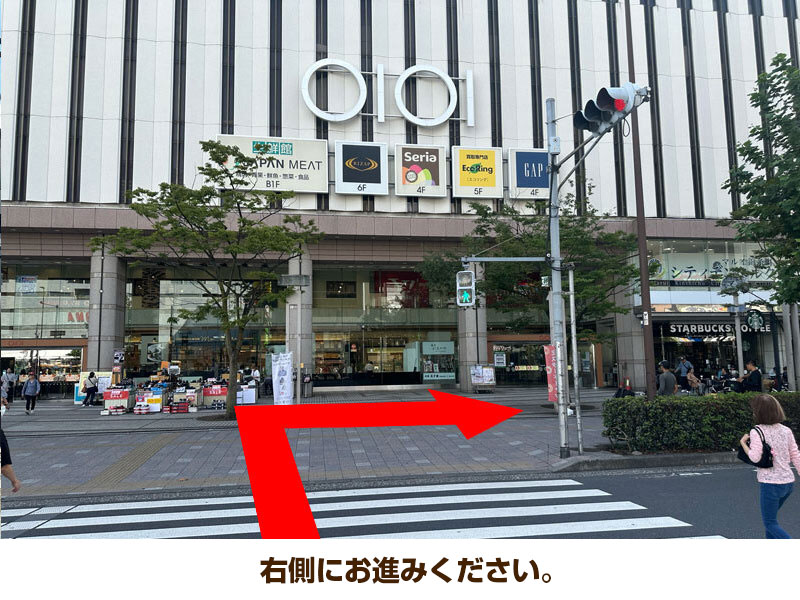 - 3つ目の交差点を渡って、前のビルは井上ビルです。