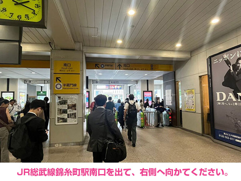 - JR総武線錦糸町駅南口を出て、右側へ向かてください。
