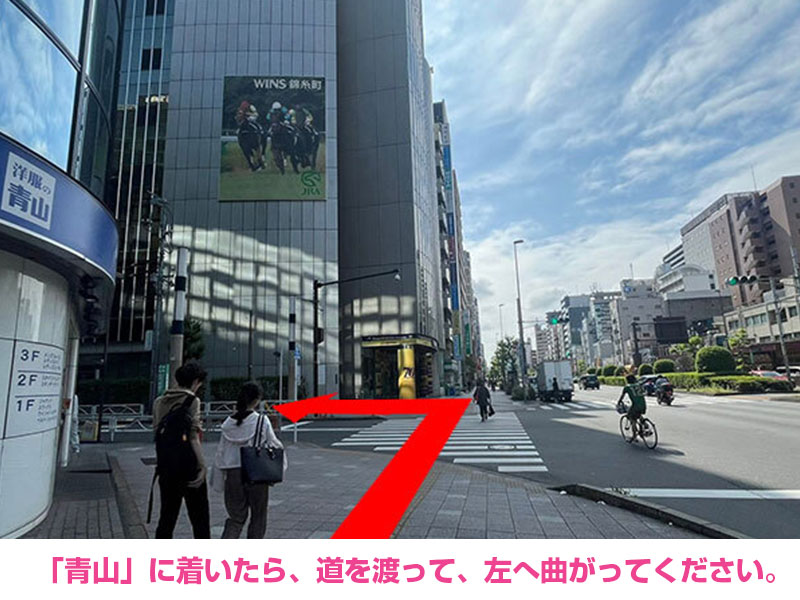 - 「青山」に着いたら、道を渡って、左へ曲がってください。