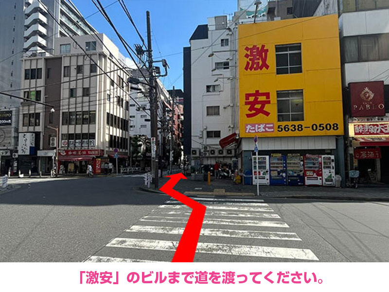- 「激安」のビルまで道を渡ってください。