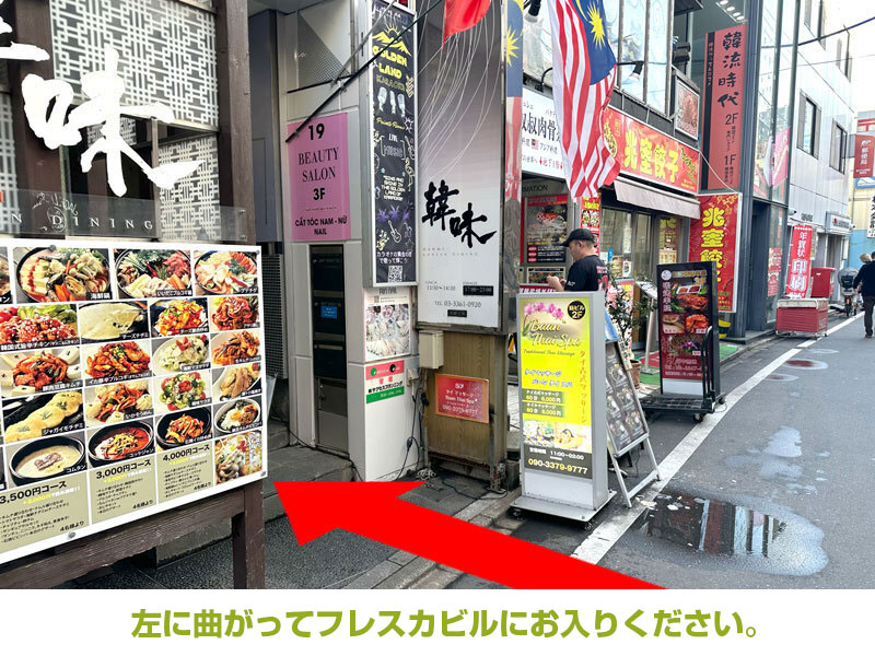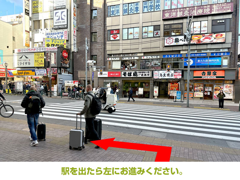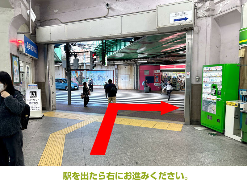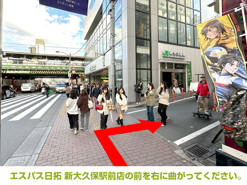 - エスパス日拓 新大久保駅前店の前を右に曲がってください。