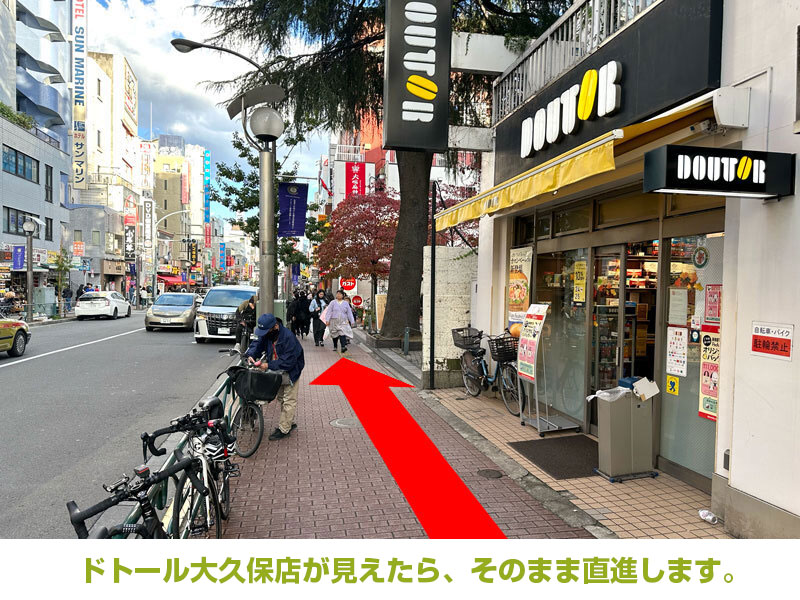 - ドトールコーヒーショップ 大久保店が見えたら、そのまま直進します。