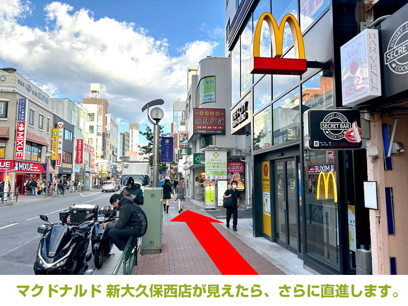 - マクドナルド 新大久保西店が見えたら、さらに直進します。